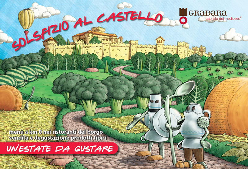 “Vi abbiamo avvertito…– esordisce il Sindaco di Gradara Franca Foronchi – questa estate a Gradara sarà una stagione decisamente mangereccia! Non a caso, lo slogan di quest’anno é: Gradara, un’estate da gustare!“Dal 24 giugno, quindi, tutti i mercoledì di Luglio ed Agosto il borgo di Gradara si trasformerà in un grande banchetto a cielo aperto dove i ristoratori proporranno menù completi a 15,00 € realizzati con prodotti tipici locali. Lungo la via che costeggia le mura sarà allestito il mercatino agro-alimentare “E’ tutto un magna magna!”, uno spazio adibito alla vendita e degustazione di prodotti enogastronomici, prevalentemente originari delle province di Pesaro-Urbino e Rimini, dove gli ospiti potranno acquistare ed assaggiare prodotti tipici del territorio ed alcune proposte di “cibo di strada”. La serata sarà allietata da gruppi di musica folcloristica ed animazioni.