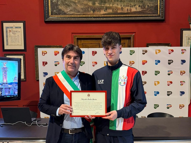 Il sindaco Andrea Biancani ha consegnato il Plauso della Città a Nicolò Della Betta, atleta pesarese della Federazione Sport Italia sordi, che ha rappresentato «con orgoglio» la nostra città alle Deaflympics di Tokyo dello scorso novembre.